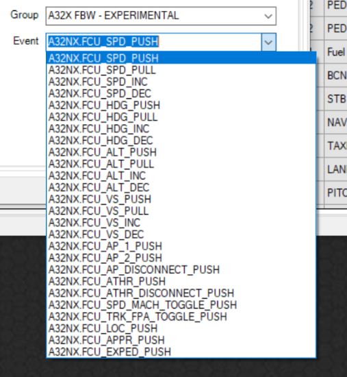FCU looks like the category! Notice the options that end with push or pull? Those are likely the buttons I’m looking for! That’s in mobiflight?