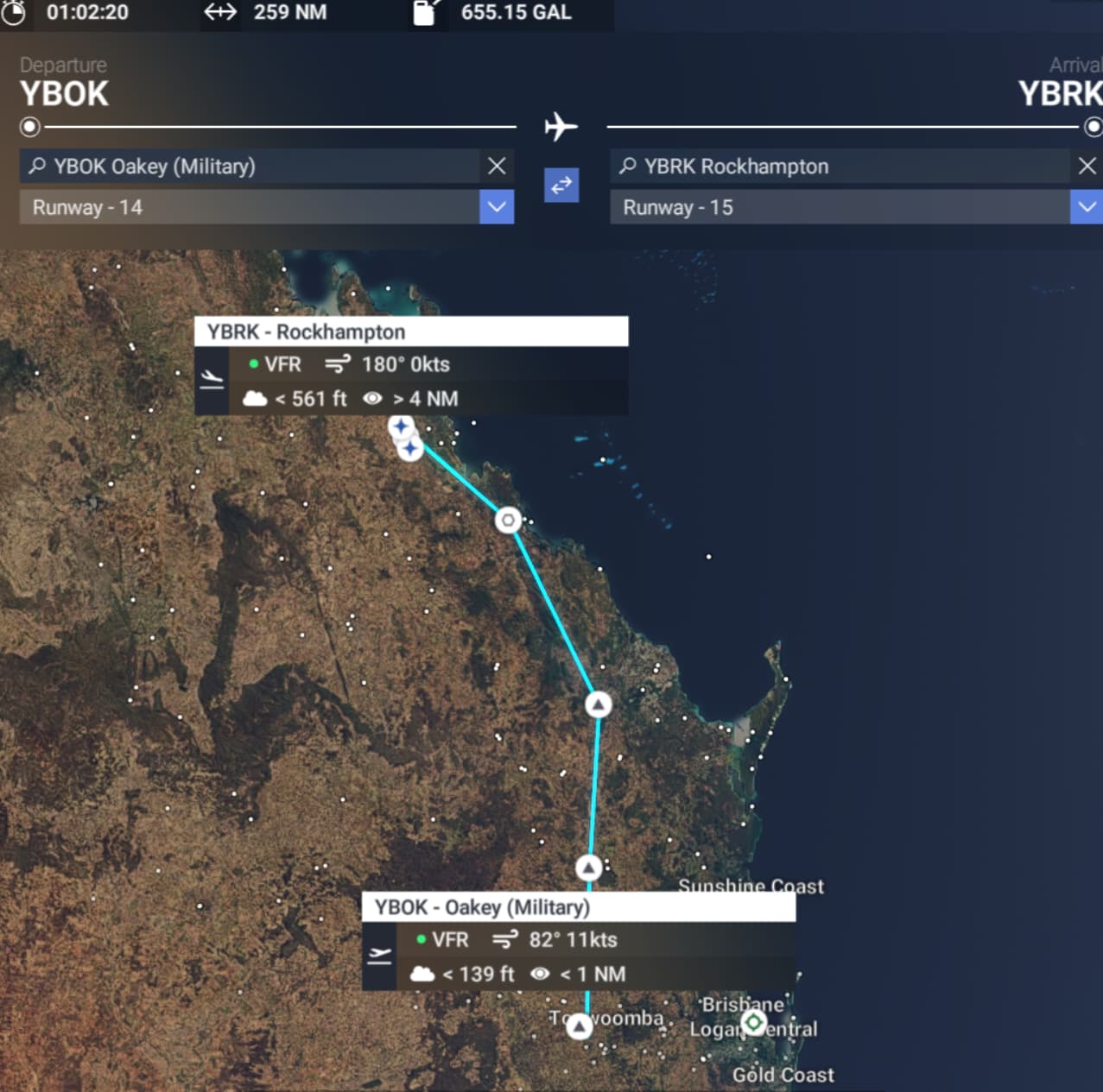 I was advised of the descent requirement on my recent IFR flight from YBOK (Oakey) to YBRK (Rockhampton). Furthermore, I used the in-game EFB tablet to plan the flight with a RNAV approach and ensured I filed the plan with ATC and sent the route to the avionics.