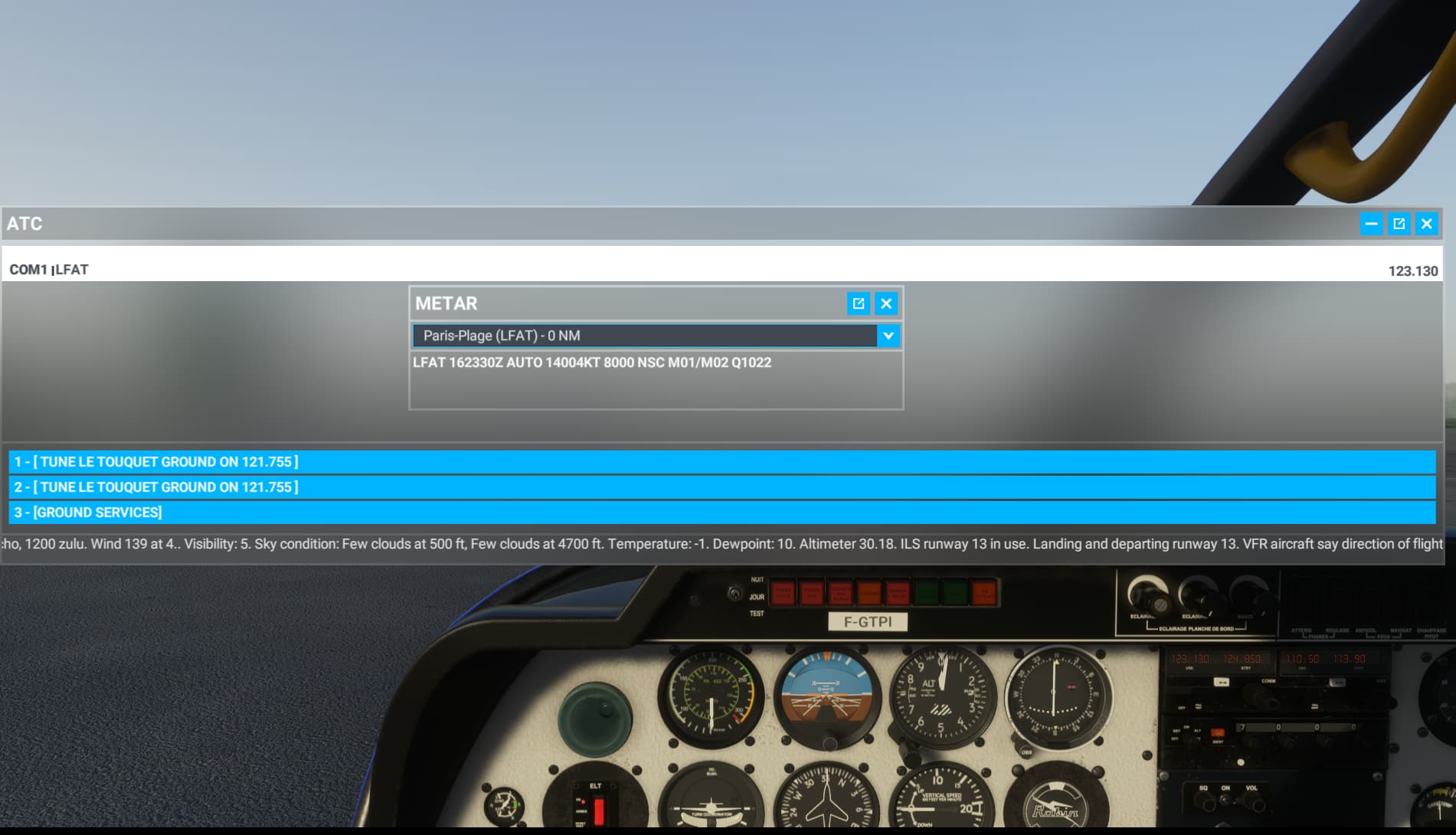Start a flight (using Live weather) at an airport where ATIS and METAR exist and have significatives differences. Compare values between METAR and MB. ATIS reports data from MB instead of METAR.