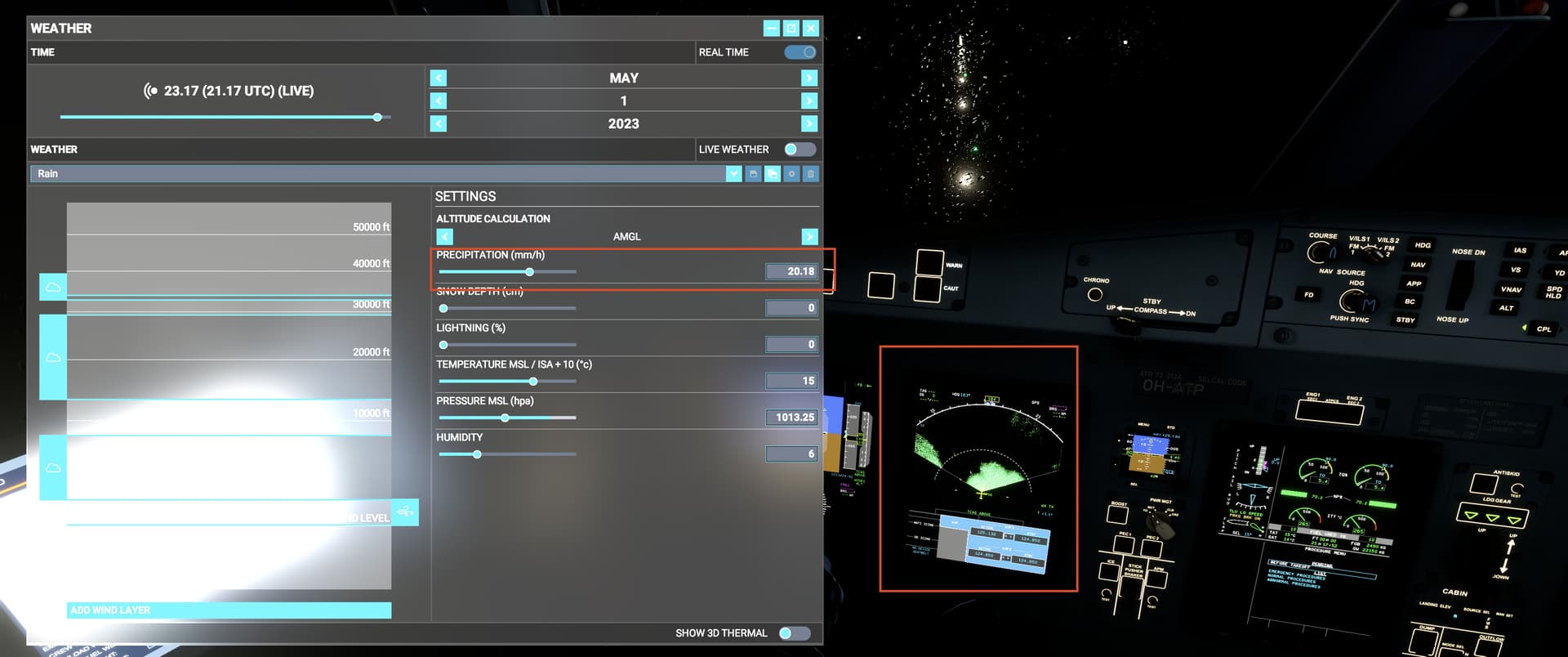 ATR weather radar is very insensitive. It shows only very hard rain and light rain it doesn’t show at all. It’s as if the color palette has been set wrong to the API so only major rain is shown.