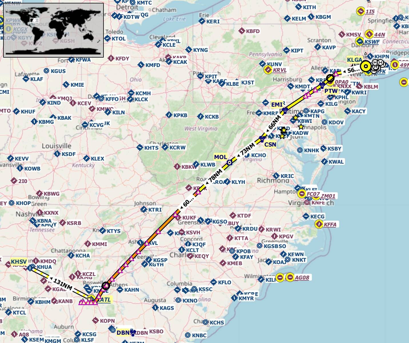 In this event we fly your favourite airliner/business jet from Laguardia to Hartsfield-Jackson Atlanta.