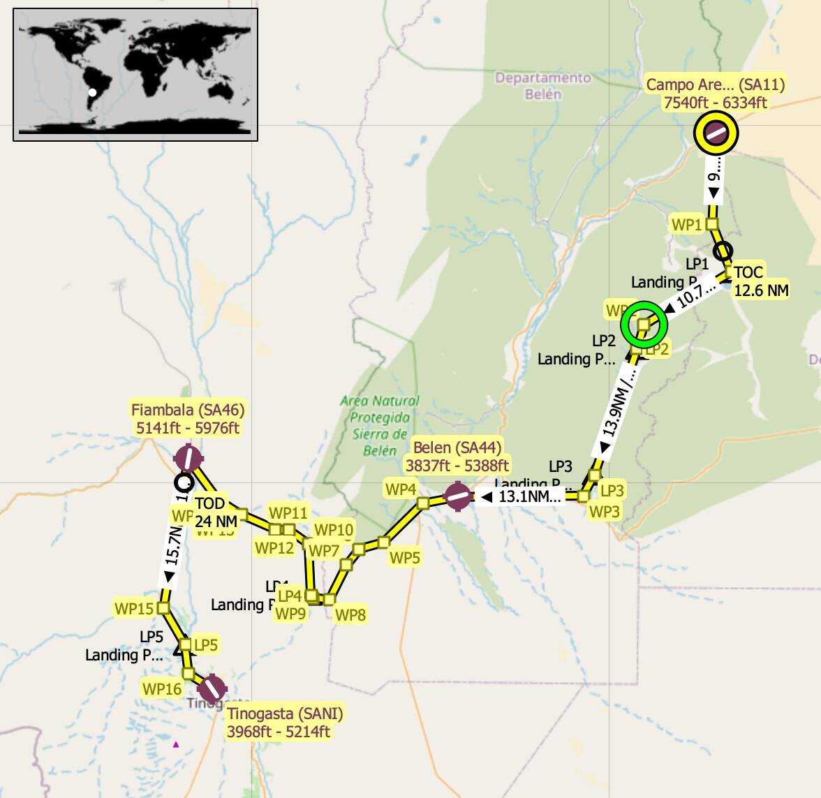 Track 329 deg to Fiambala(SA46) 5.3nm
