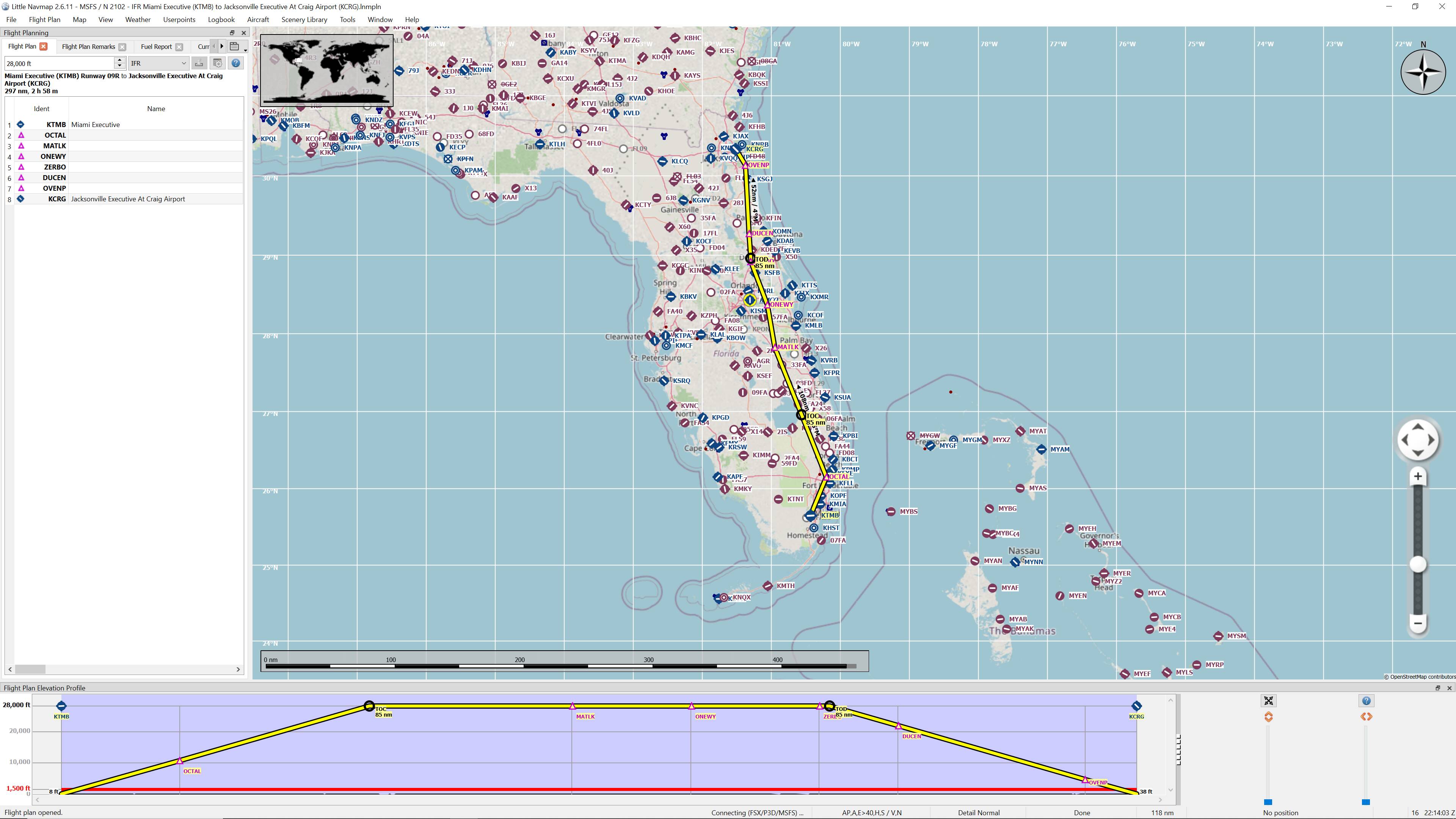 Route: KTMB(Miami Executive) - OCTAL - MATLK - ONEWY - ZERBO - DUCEN - OVENP - KCRG(Jacksonville Executive).
