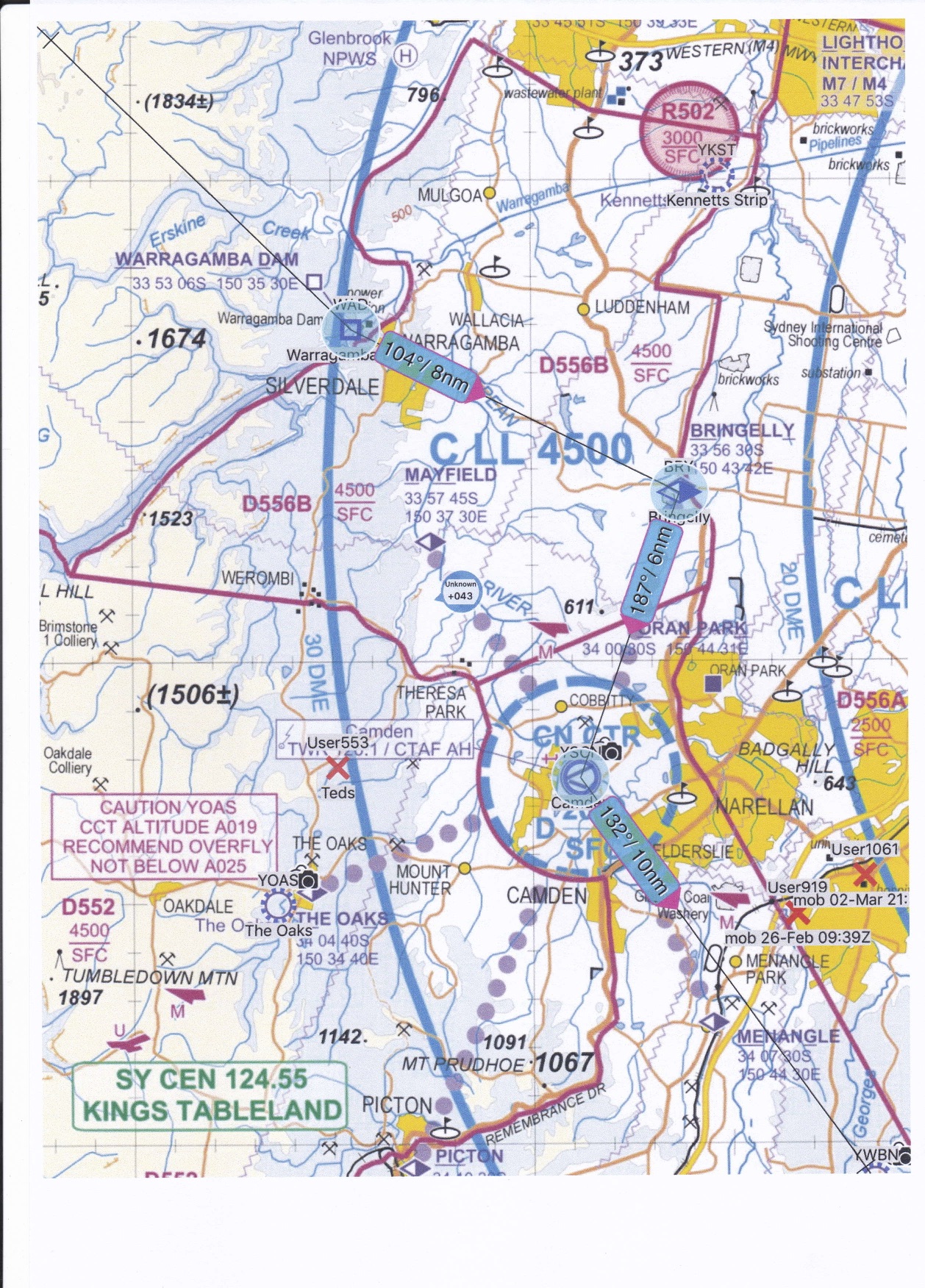 Altitude: The route can be flown at 5,500’ but you can vary the altitude to suite the terrain. Note: you should be 1,800’ at Bringelly for approach to Camden.