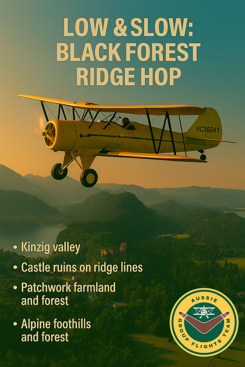 This week we’re cruising through the Black Forest and Alsace in your favourite biplane.