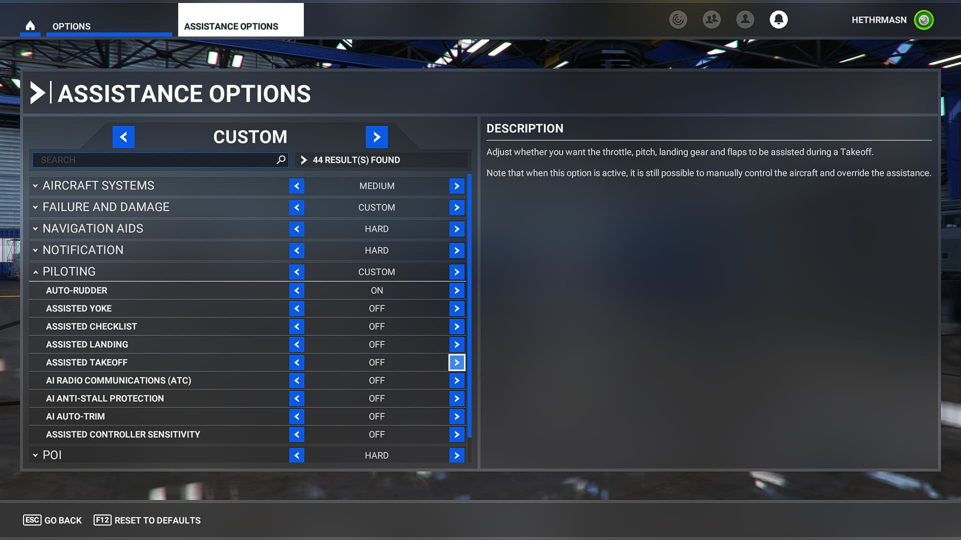 If I start a flight using the Fenix A320, and then I want to have the auto rudder ON, I open the same menu you showed here, but everything is greyed out and instead of “custom”, you see “volocopter”…