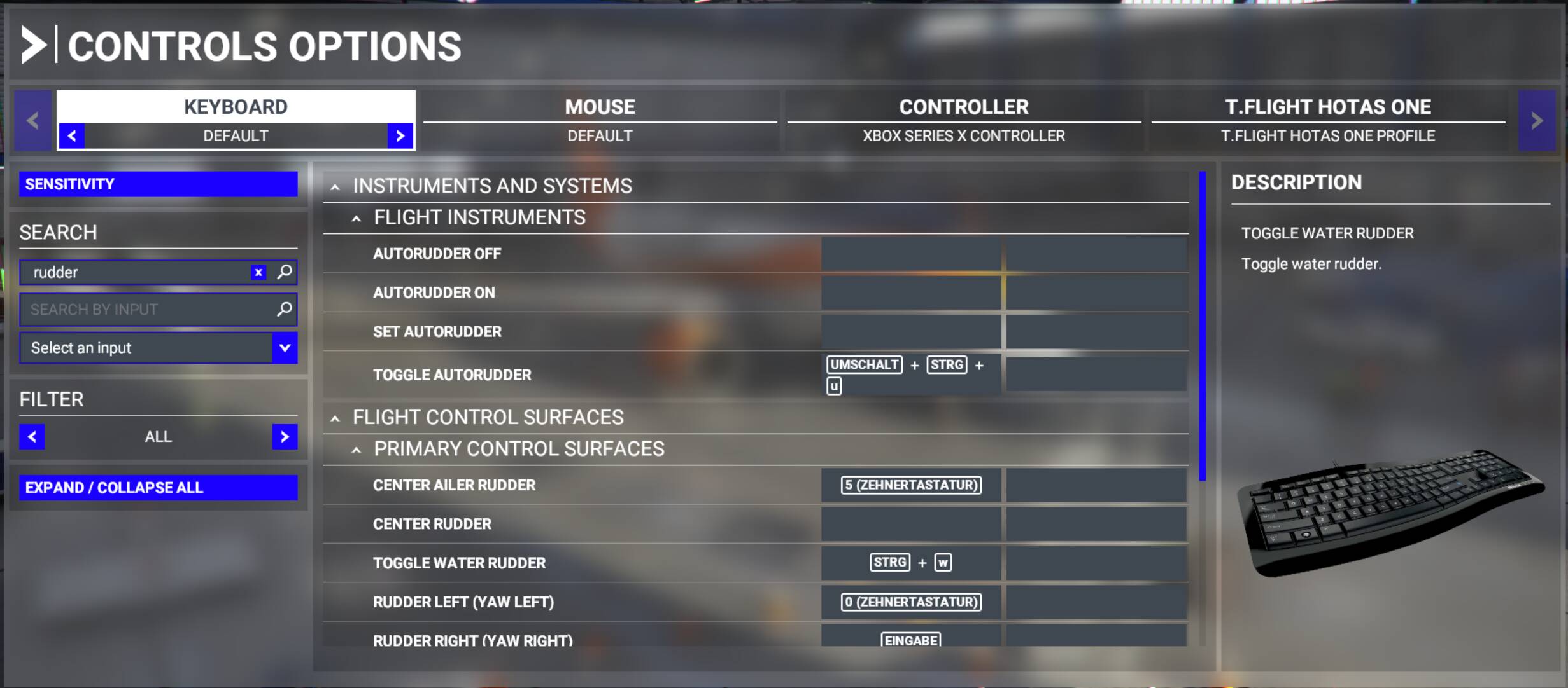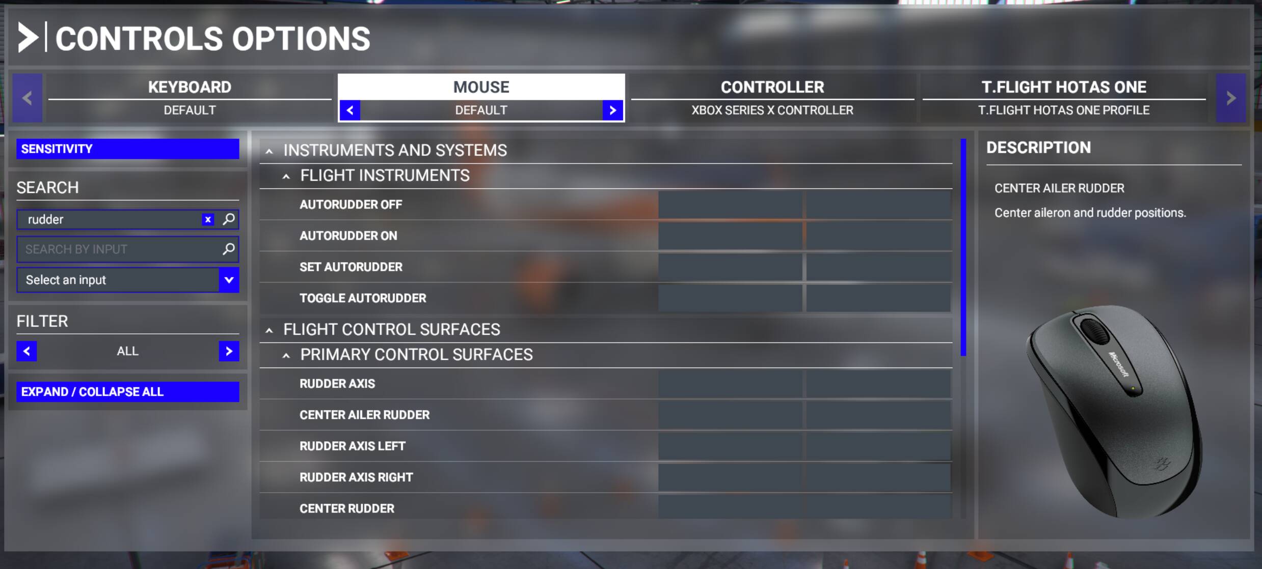 I also make sure my flight control commands including the rudder is only bound to one hardware, and no double binding coming from other hardware to the same flight control command, like Keyboard, I cleared every binding except for the ESC for Pause menu. and I only have a mouse, my TCA sidestick, and TCA Throttle Quadrant. That’s it, nothing else connected.