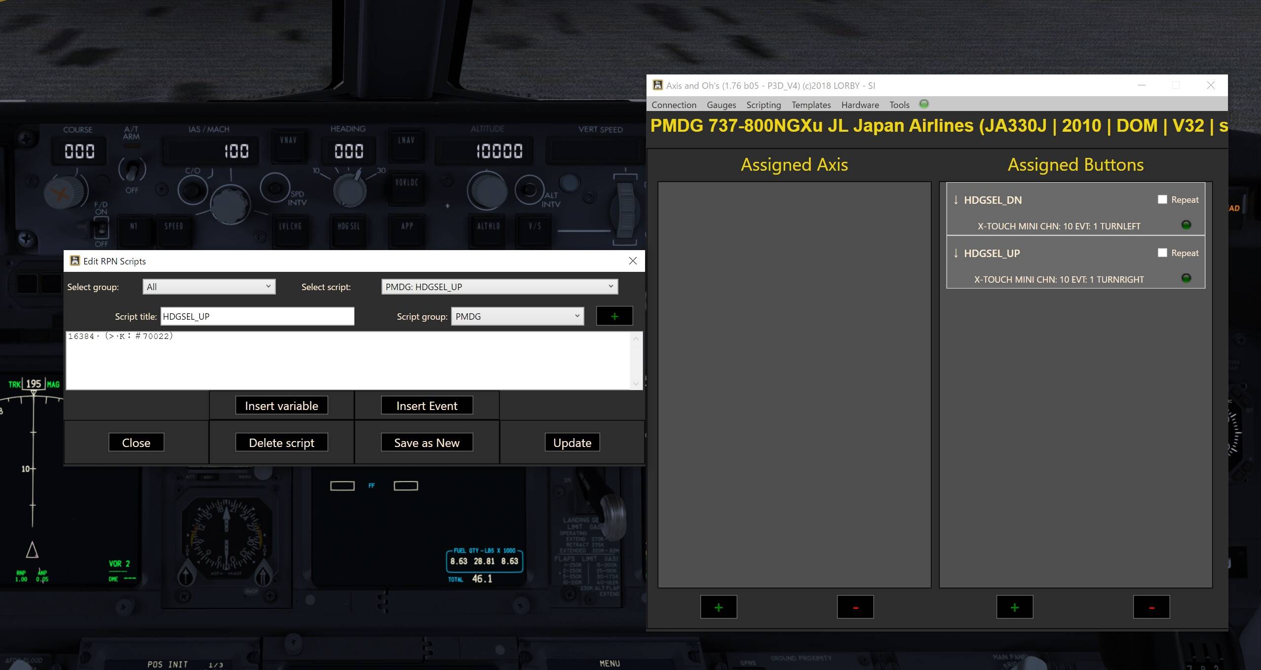 I know that the Behringer wasn’t designed for this but it does work thanks to your software. I had 2 very enjoyable flights yesterday after finally getting it set up. It really made flight level changes much easier at least. My problems with getting it working is that most of what you guys talk about in these threads reads like Greek or Latin to me. I don’t understand and am not in the least familiar with software development terms and at almost 69 tears old, I probably am not going to learn much. All the talk about Events and Scripts, etc and I just get blurry eyed ;).