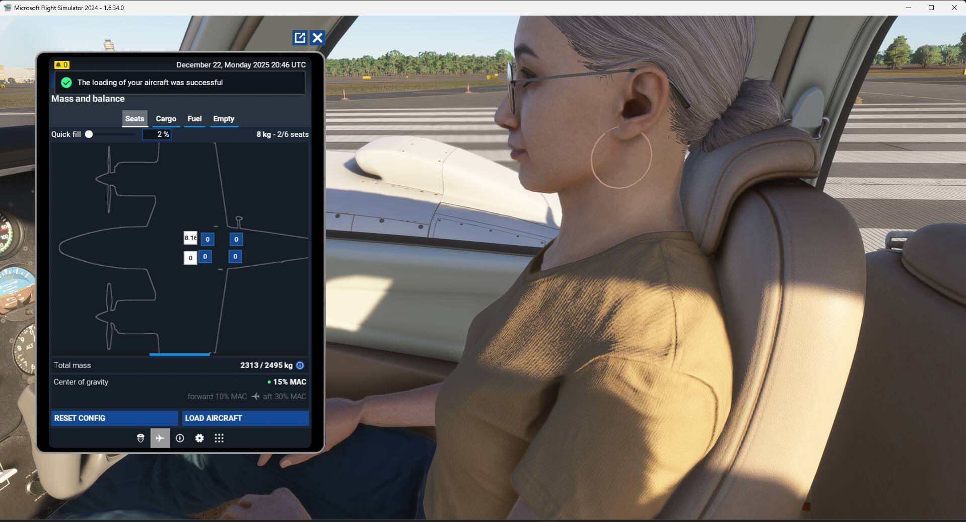 Cannot replicate but I am seeing a different issue: when adding the co-pilot weight, I am not seeing the avatar co-pilot but a passenger avatar, starting on the runway or cold & dark. @UppishWind75631 : do you have some specific steps maybe to follow to get the proper co-pilot avatar ?