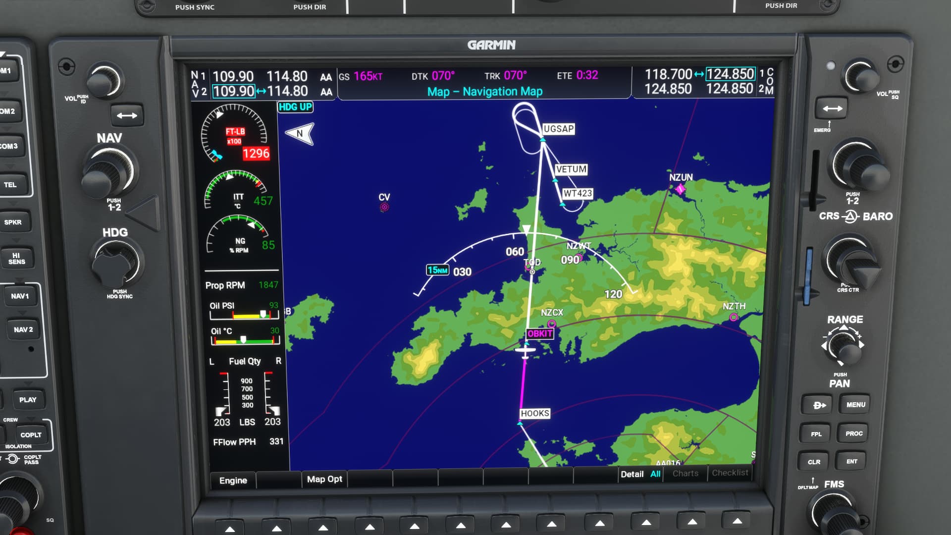 I had varying degrees of success and satisfaction in MSFS today, started with an aborted takeoff out of Auckland due to the torque limit indicator rolling back as I advanced the power lever on the runway. I haven’t flown the Caravan for a while in the sim, and after jumping on the WorkingTitle discord, it turns out that the torque limit going to 0 is a stock panel systems bug and the the NXi reads the panel.xml configuration but all the calculations are done there on a per-plane basis and not in the NXi. Thankfully the backup analog torque indicator below the screens functioned as expected and was able to be used on my second attempt!