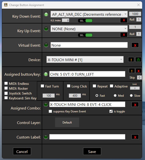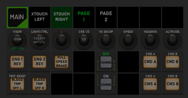 Sure, spad.next can support more than 2 modes nowadays and in some aircraft Iâve ended up using 3 modes which I change through the 2 layer buttons.Or even through Elgato Stream Deck as I can not only change Xtouch modes through it, but I can even document which button is doing what in Xtouch mini. In the Stream Deck page below, none of the buttons does anything (except Xtouch left/right and page 1/2 which is effectively modes A/B), they just show which Xtouch button does what depending on mode and itâs sometimes more useful than having to print different labels for each aircraft and sticking them on Xtouch or printing and laminating A4 sheets with all mappings.
