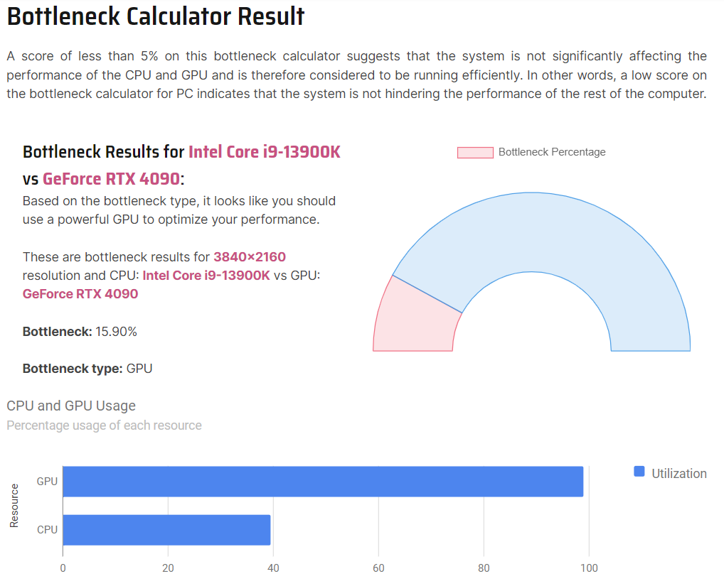 Pairing 4090 with 13900K however, will have the GPU fully utilised, and the CPU has a lot of headroom to work with. So basically even after everything the CPU has done to send to the GPU for render, the GPU would be fully utilised to render the whole thing that you want it to as best it can. The CPU will have a lot of headroom as there’s still about 60% of its processing capacity available for everything else. Meaning it has enough room to use it for other processing like aircraft instruments, etc. This is what you want.