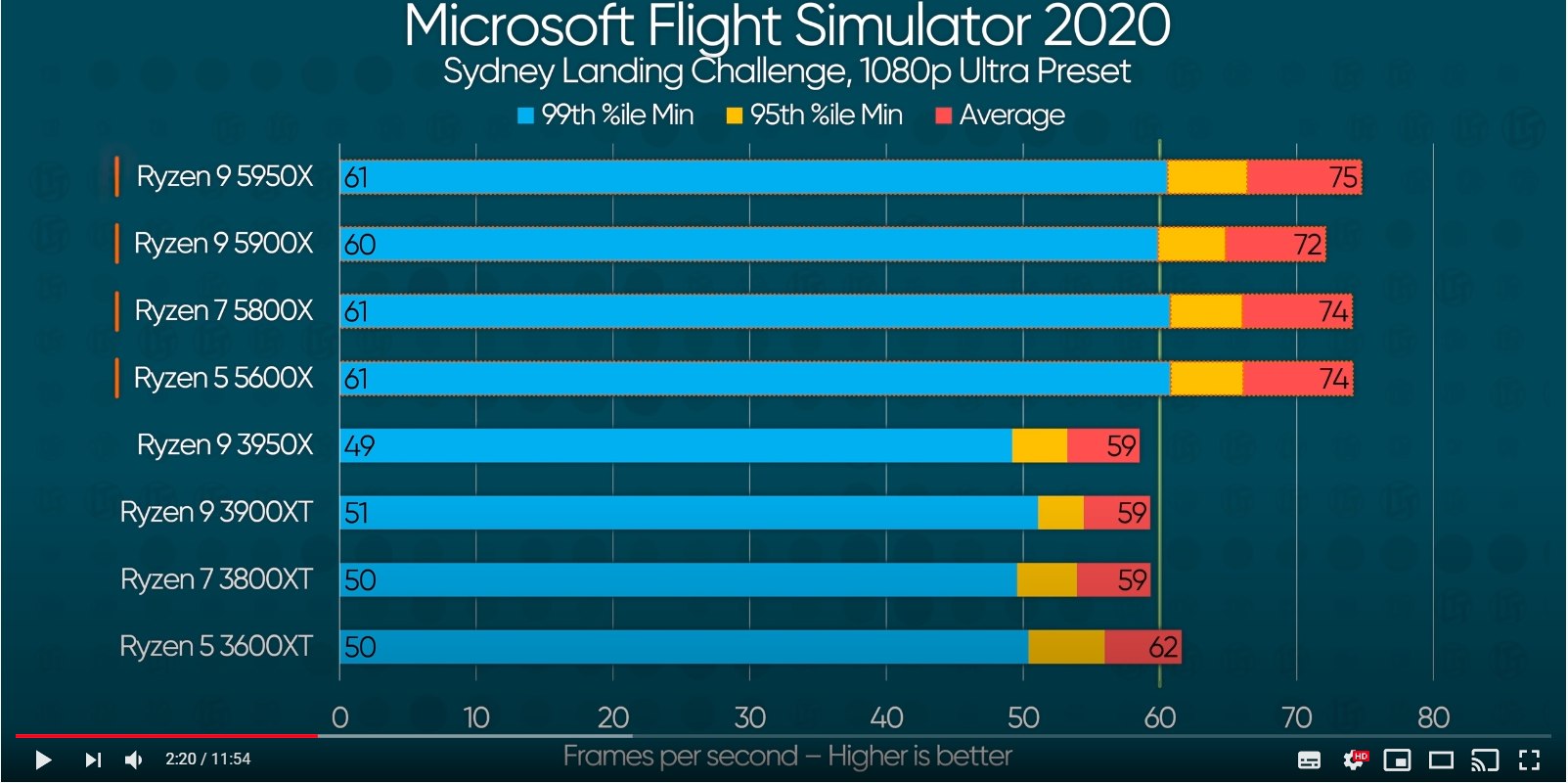 i was thinking of going for an rtx3070 but from whats shown above i will see potential gains of 25-30% by going x570 motherboard and a 5600x , this system of mine plays quite happily at 4k so its a surprise to see the gains for flight sim by processor changes which now make more sense than changing the video card and i can leave that for later when the new AMD’s come out which look likely to challenge nvidia for the first time in a long time