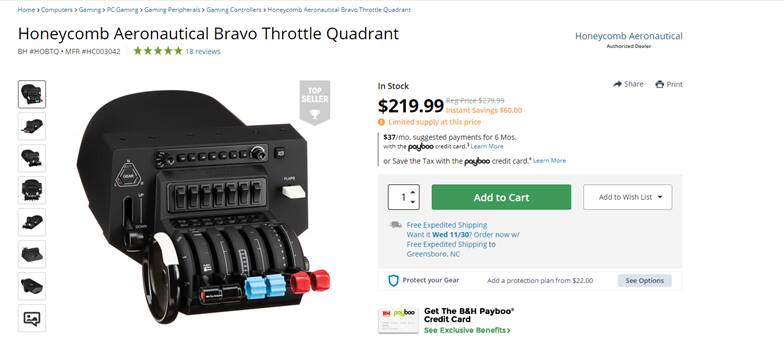 I have 2 cheaper (though very good value) saitek throttle quadrants so might replace these with the Honeycombe quadrant at this price. I suspect (hope) these will be of much higher quality.