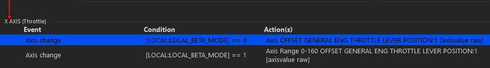 - The throttle axis to work differently depending on said beta mode: