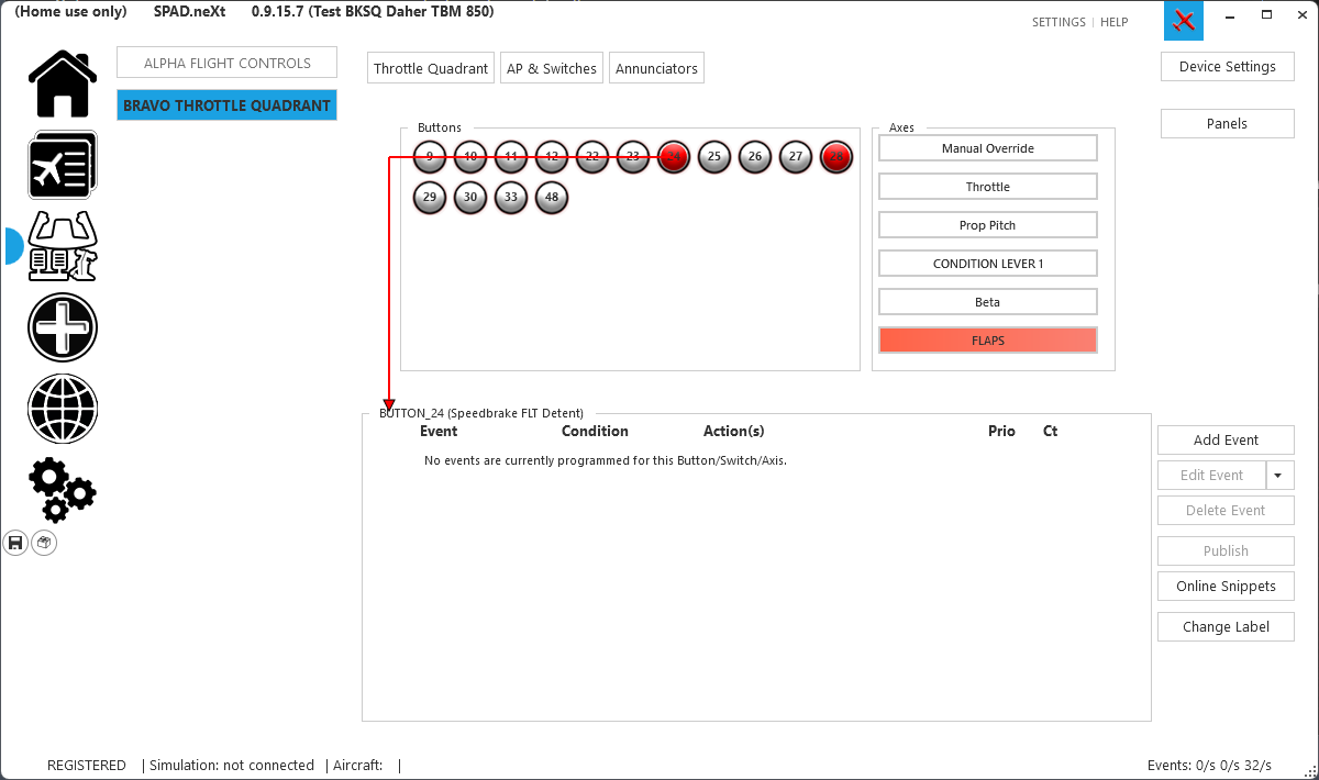 I’ve managed to map throttle reverse and prop feather and condition cutoff via spad, using the usual methods of repeated events, for example continuously sending THROTTLE1_DECR 1, PROP_PITCH1_DECR 1 and B:FUEL_1_Condition_Lever 2 or 1 respectively.