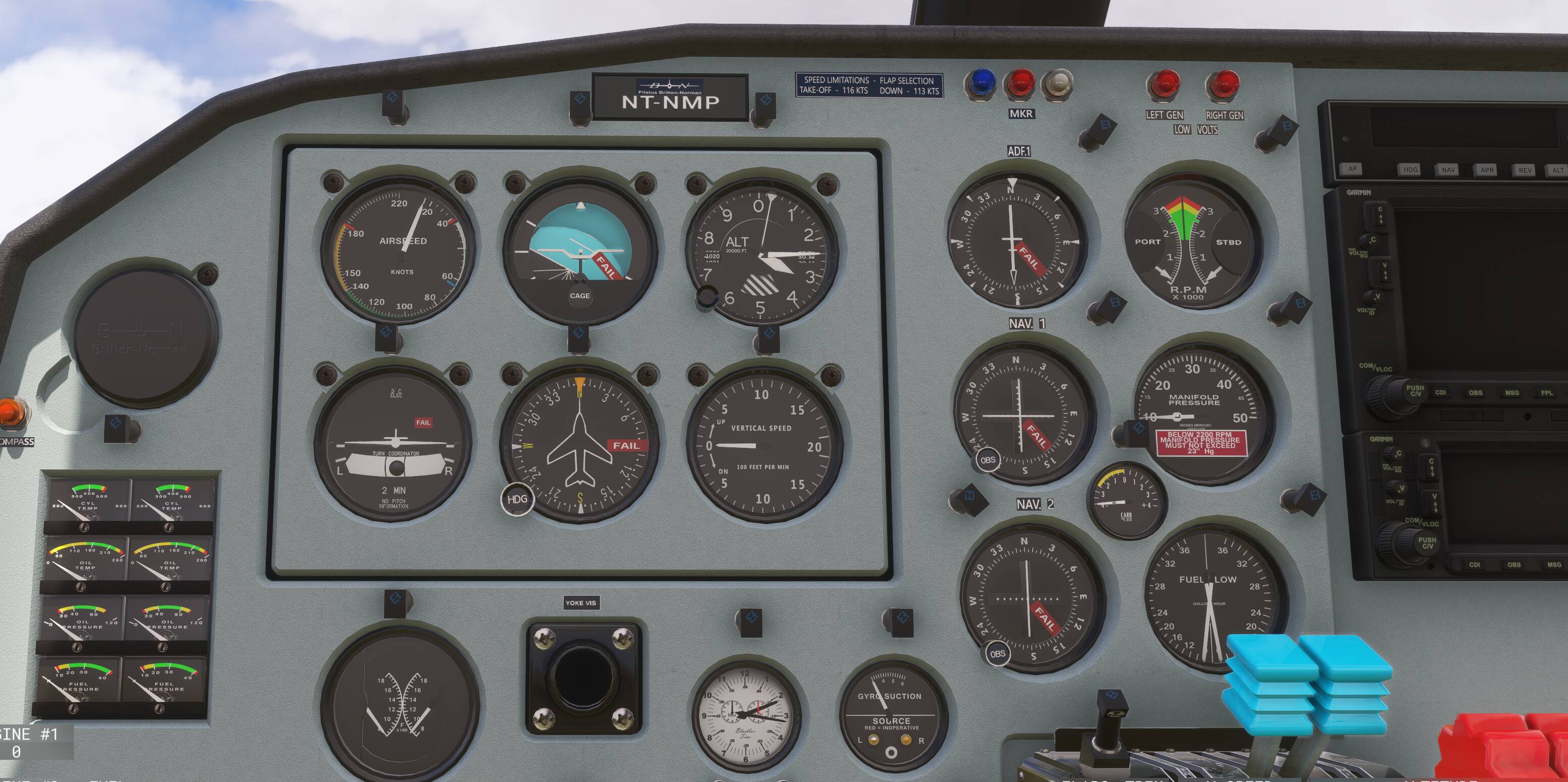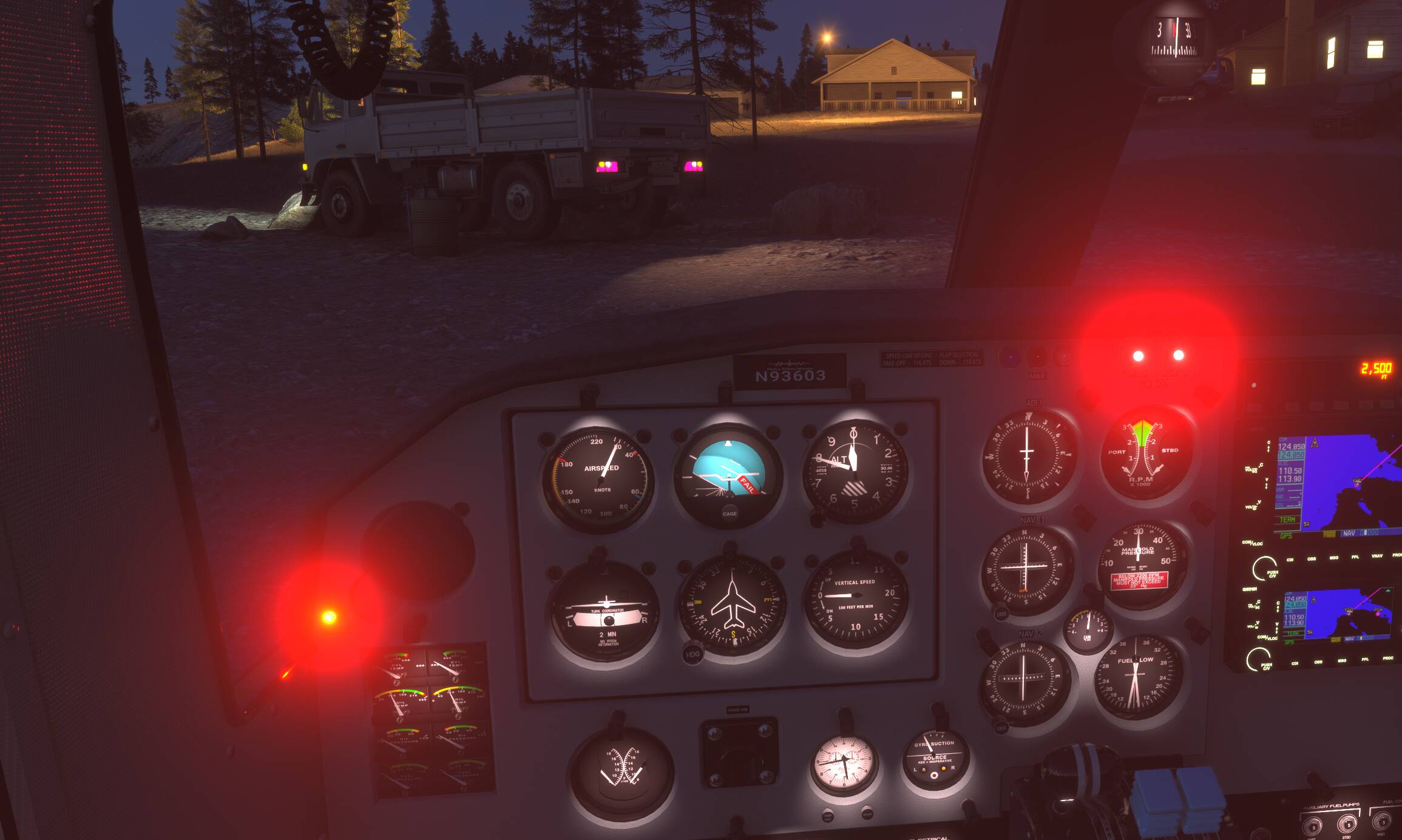 the red lights on the cockpit are so bright they blind you in the evening and there’s no way to dim them as far as I can tell.