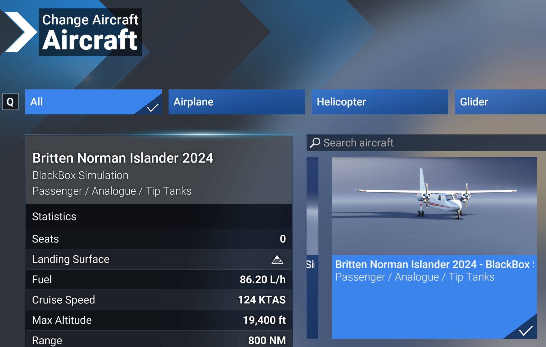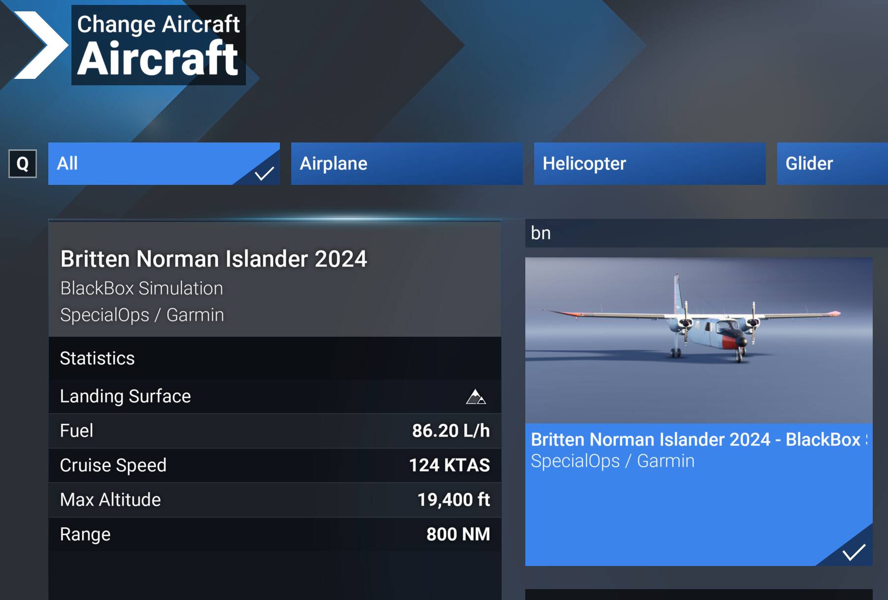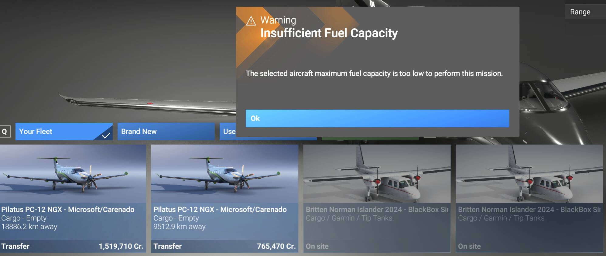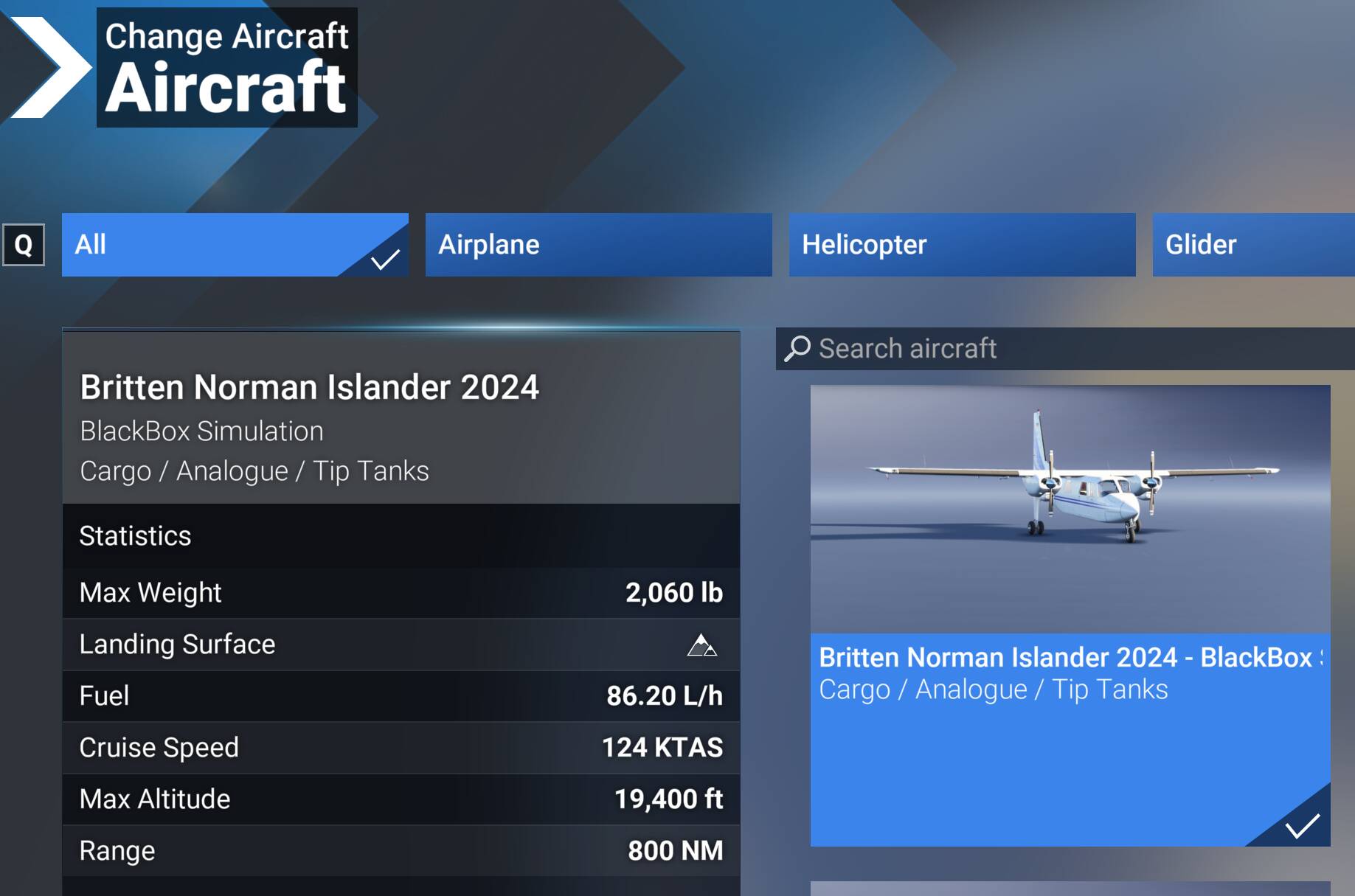 in Career, it appears that every Medium Cargo mission exceeds the maximum range of the BN2 (even with wing tanks). in fact, i haven’t found a single mission which the Islander can fly.
