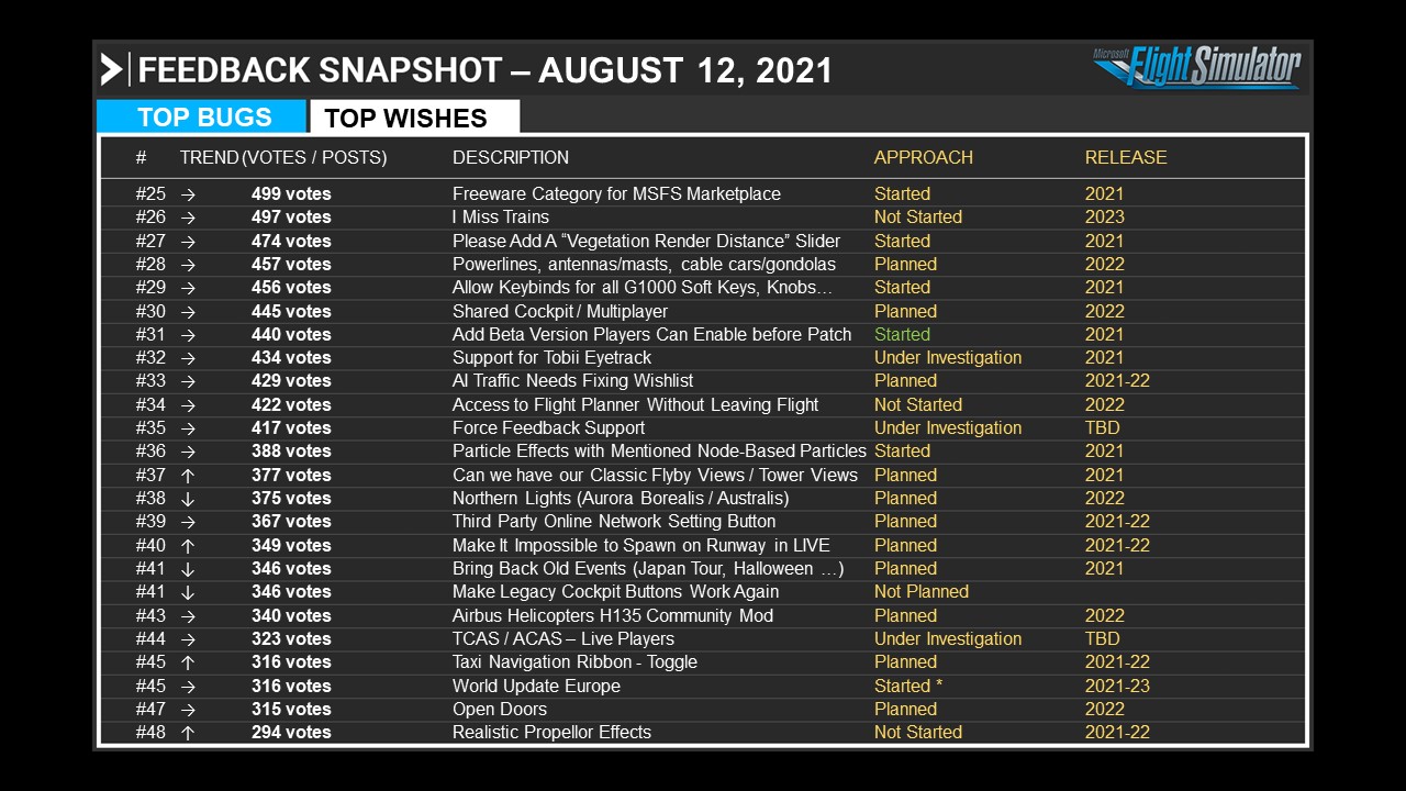 - 35 aircraft (+0) have been released in the in-sim marketplace.