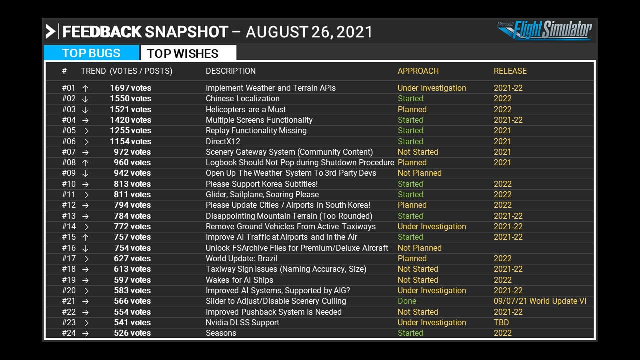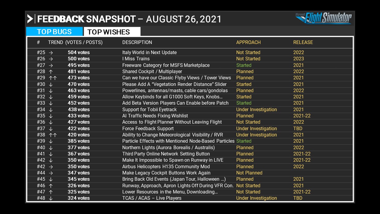 - 426 airports (+1) have been released in the in-sim marketplace.