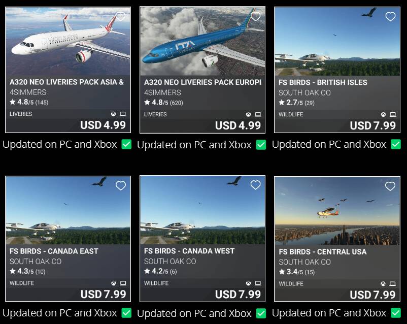 194 scenery packs (+9) have been released in the in-sim marketplace.