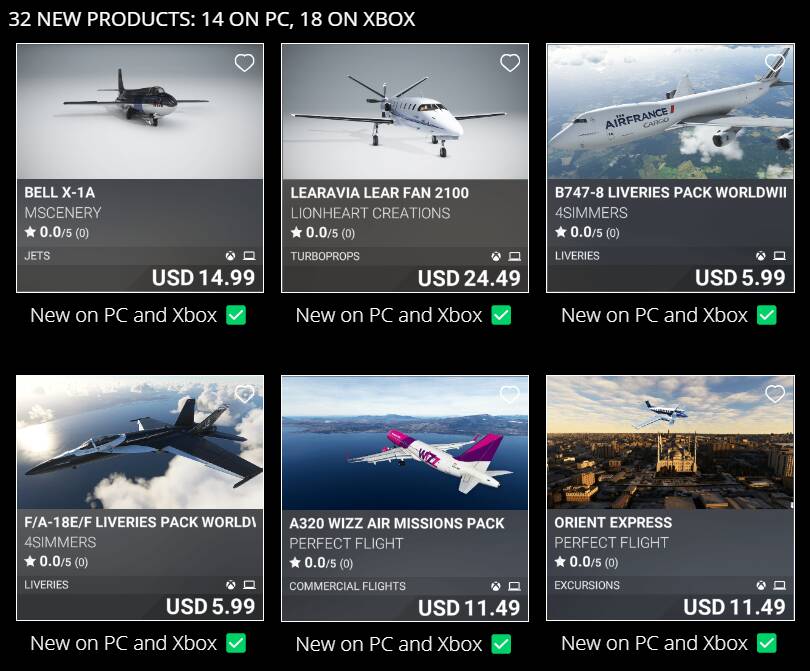 76 aircraft (+4) have been released in the in-sim Xbox marketplace.