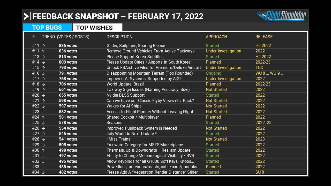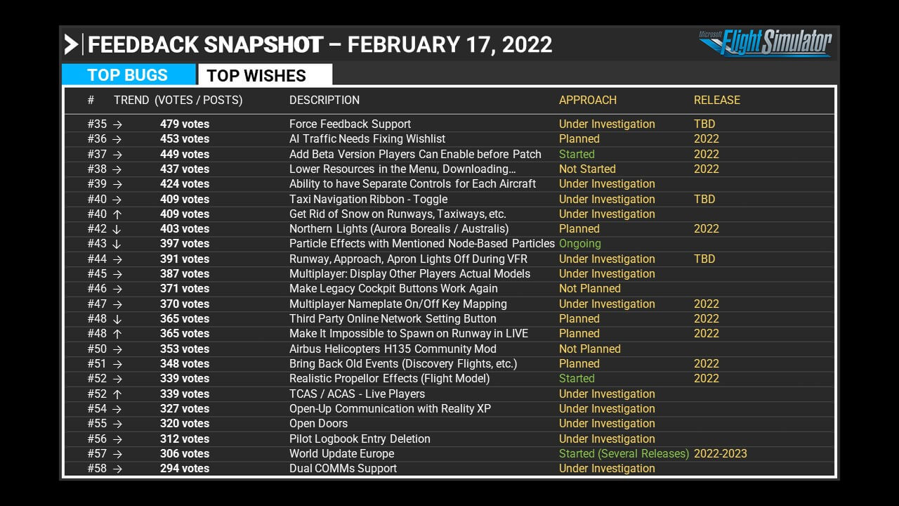 - 45 aircraft (+0) have been released in the in-sim Xbox marketplace.