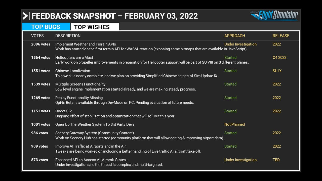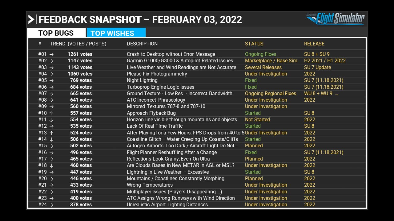 We are working on revamping our Bugs & Issues section to better reflect the top bugs in our Feedback Snapshot. More updates to come!