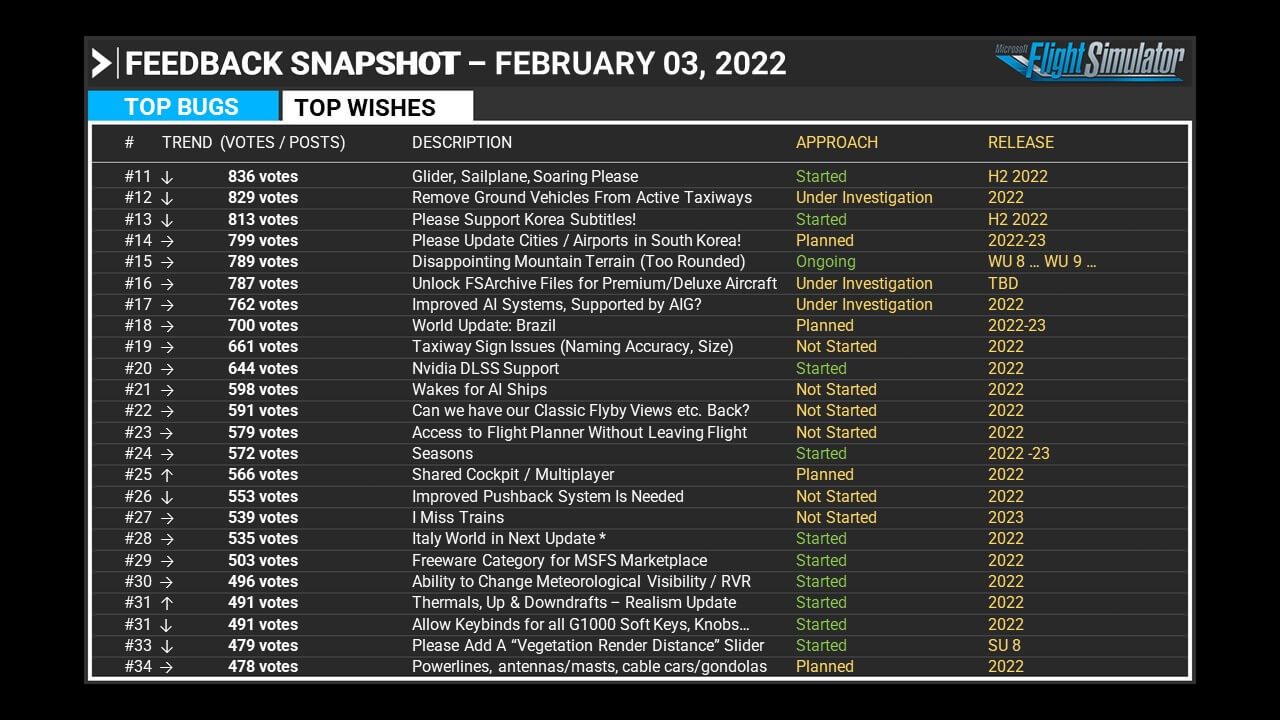 - 69 aircraft (+1) have been released in the in-sim marketplace.