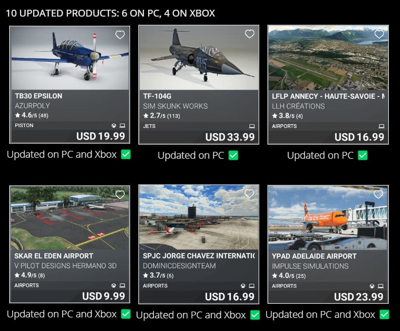 - 102 aircraft (+0) have been released in the in-sim PC marketplace.