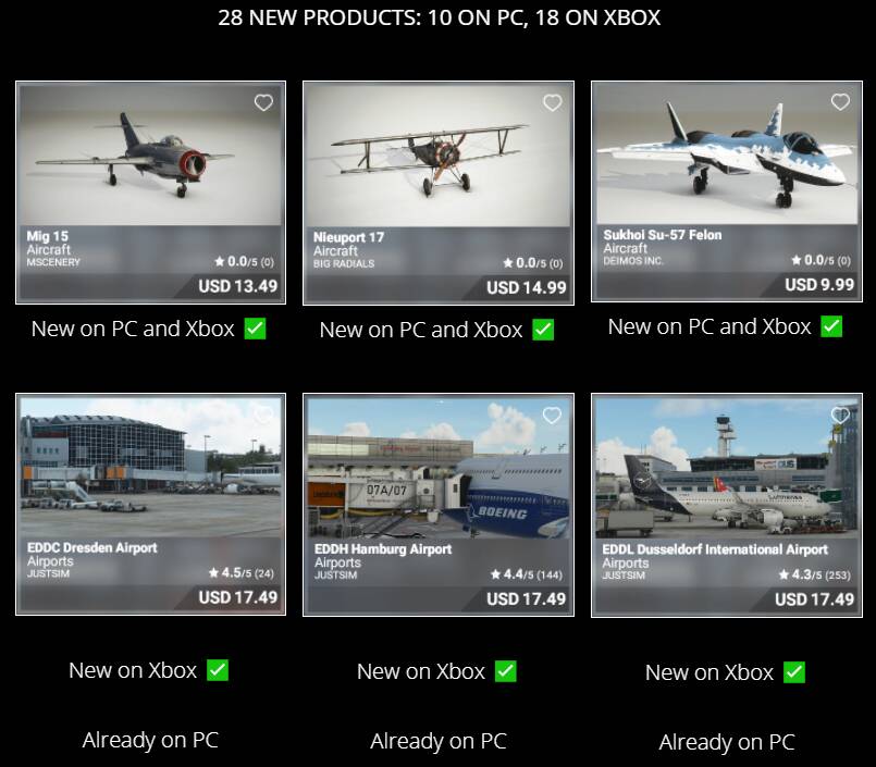 - 74 aircraft (+0) have been released on the platform so far in various stores.