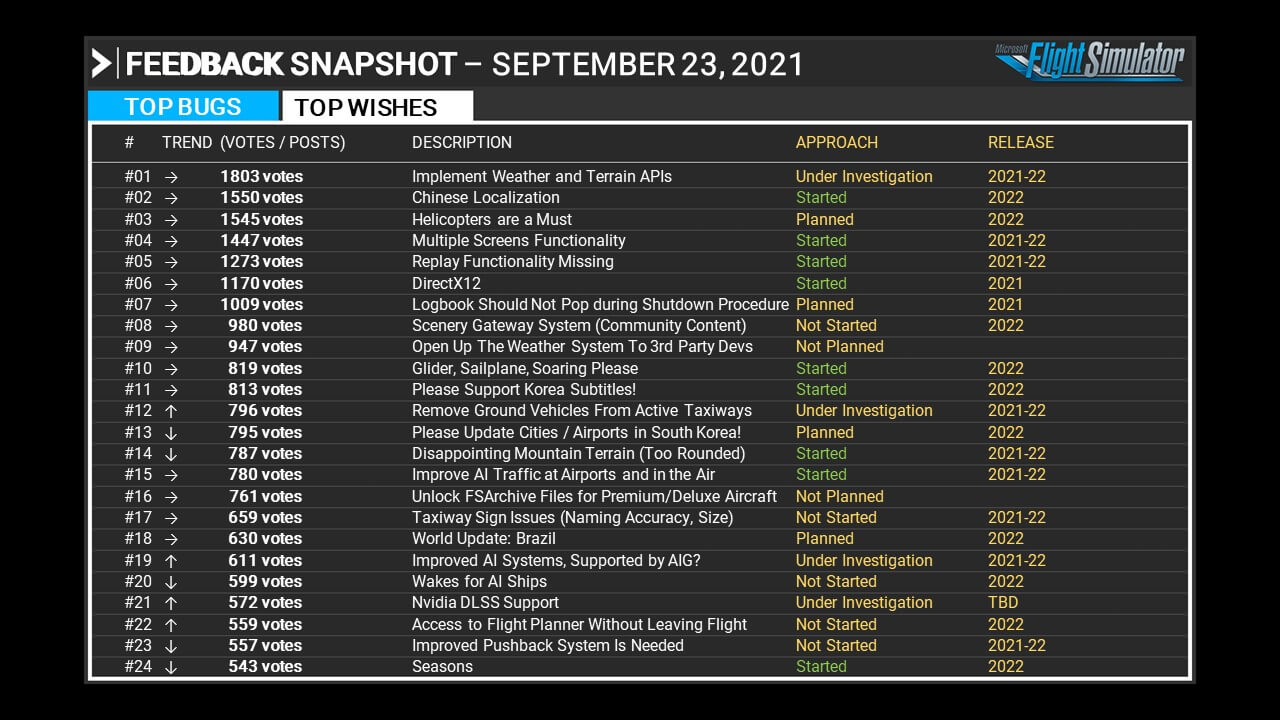 - 436 airports (+1) have been released in the in-sim marketplace.