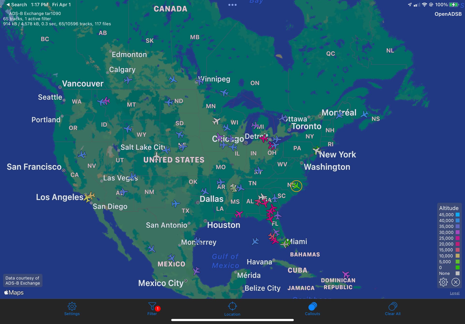 There are 65 of them flying around North America right now, per ADSB data: