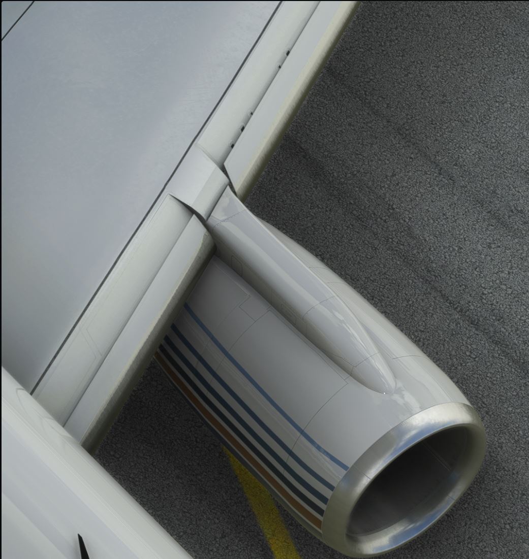 Posted another mini update on the FB page. This is just a sneak peak at the level of detail we are aiming for on the exterior textures. Here we focused on the engine and pylon. Still WIP with a few tweaks needed.