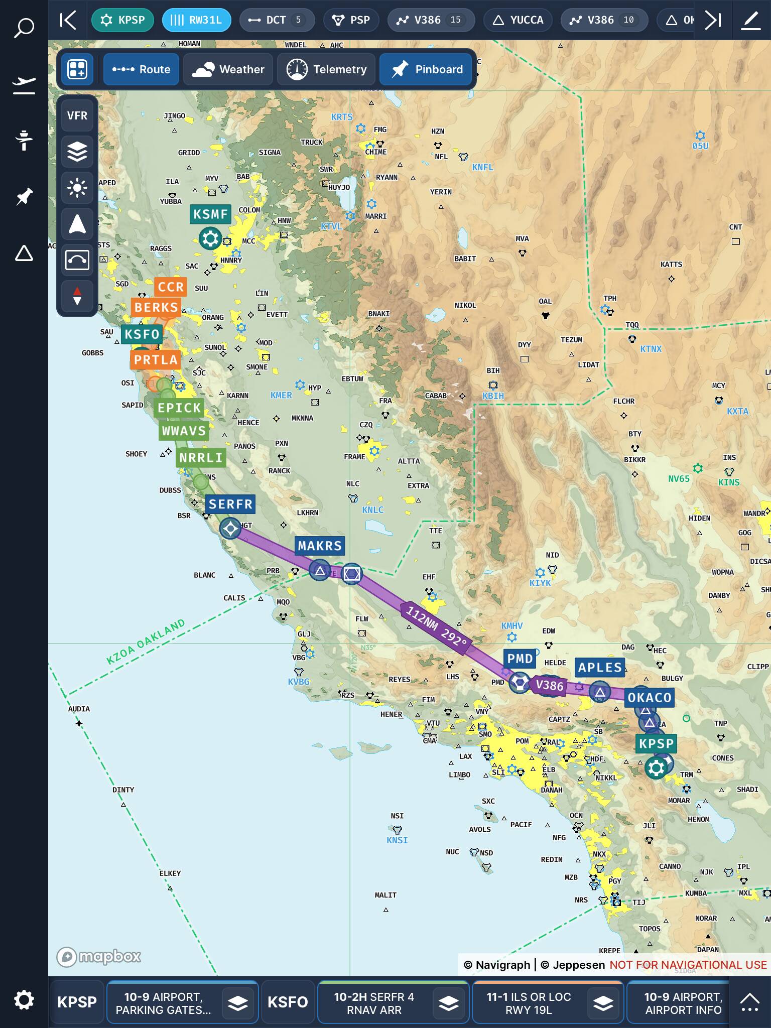 In the case of Navigraph Charts, the “magenta line” is really all the legs of your flight plan, with each waypoint clearly labeled. Obviously, your location is known to the app, but your navigator would be doing all that in a real-world period-correct 707 flight.