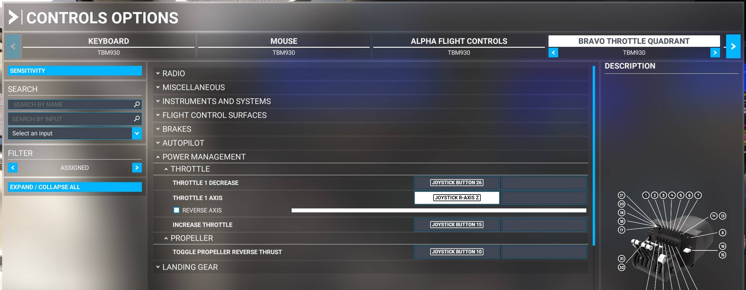 This is a question about setting up the Bravo Throttle Quadrant to control the TBM 930 throttle. Once I move the throttle lever over to the right side using the prop lever it is in hi idle position. The throttle lever on my Bravo is at the idle position. If I pull it back through the detent it goes to idle cutoff position. The only way I have figured out how to move to Lo Idle is with my mouse.