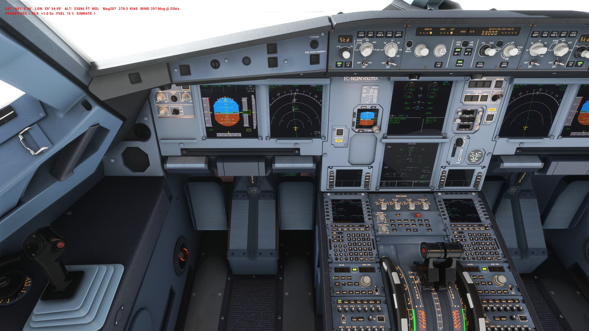 Although I have adjusted the brightness of the monitor to the maximum and the panel lights are all on and adjusted to the maximum, if I move the point of view upwards the panel appears exaggeratedly dark, and it seems impossible to read the displays.