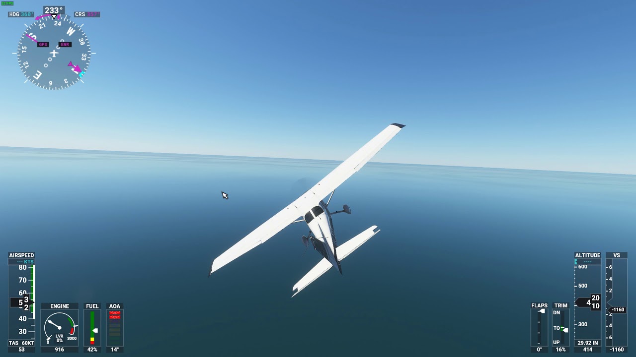 Tried to determine the 1g stallspeed in the beginning which isnât really clear as there is no clear stall break. Accelerated stall in 60 degree steep turn, the stall warning seems to be activating earlier, that part is correct at least. The stall characteristics are broken still so no proper stall or drop of the inner wing (by the way, nice coastline):