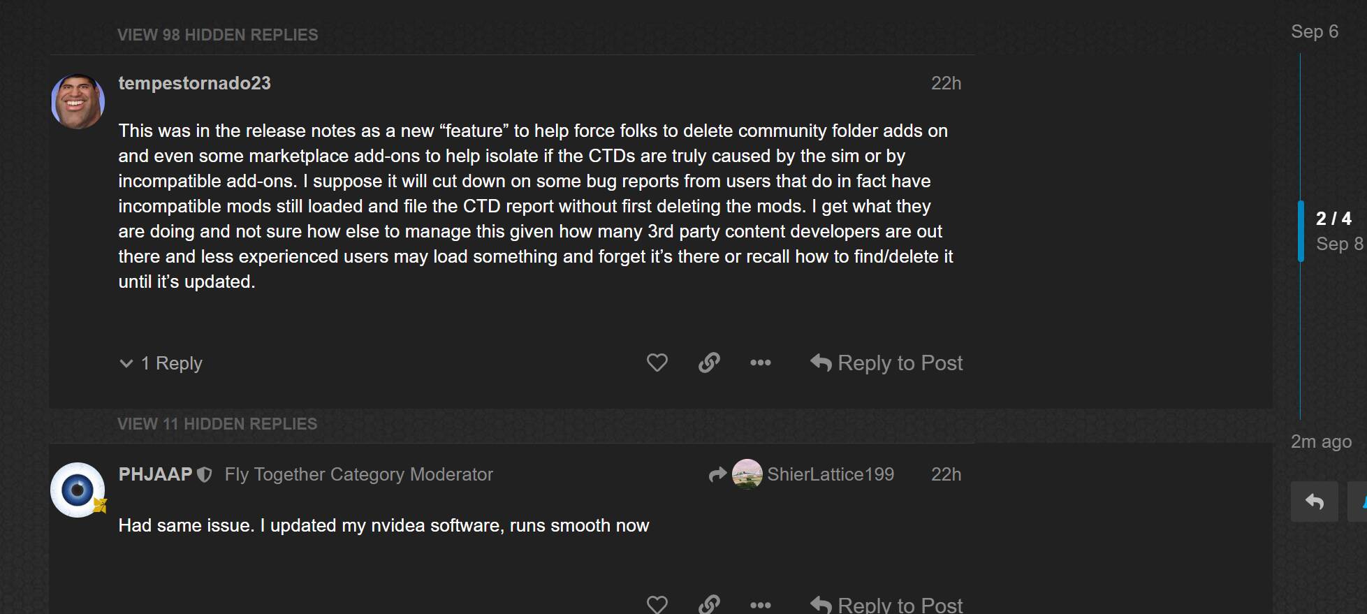 I’m glad to see that MSAsobo is doing something to help us with our own diagnosing, and I hope more like this will be forthcoming. I know that a few months ago when I began getting CTDs, I deselected everything in MSFS Addon Linker and thought that would give me a clean start. But upon further review, I found that I had somehow copied a rogue mod directly to the Community folder and forgot about it.