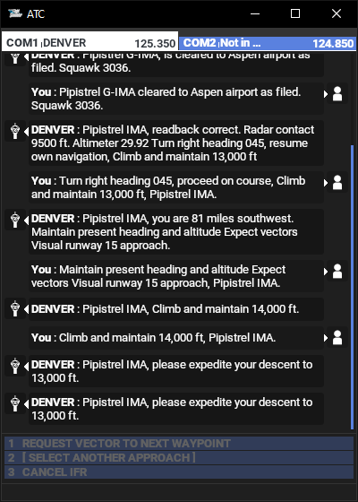 Approaching KEGE with the Asobo ATC is completely suicidal, the ATC wants you to descend to 4000ft when the airport is above that and you have mountains all around.