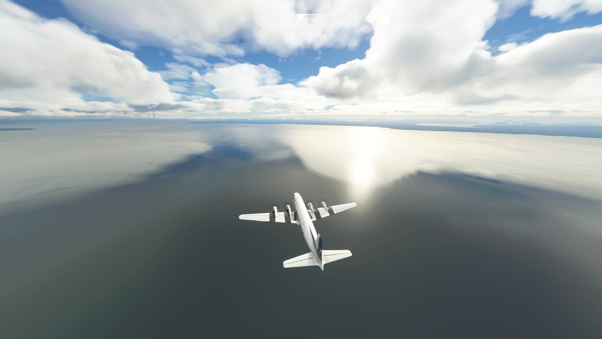 Reproduce: fly out from runway 26 at Stuart Island Airstrip down the slope north, fly across the bay of water then loop back to Stuart Island Airstrip over the water looking down into the bay at some point you will see clouds and mountain reflections show up like minecraft.