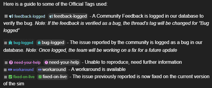 Regardless, this doesn’t mean the bug isn’t being looked at and priortized since it isn’t in the FS - I have confirmed there are bug reports now open for both sims.