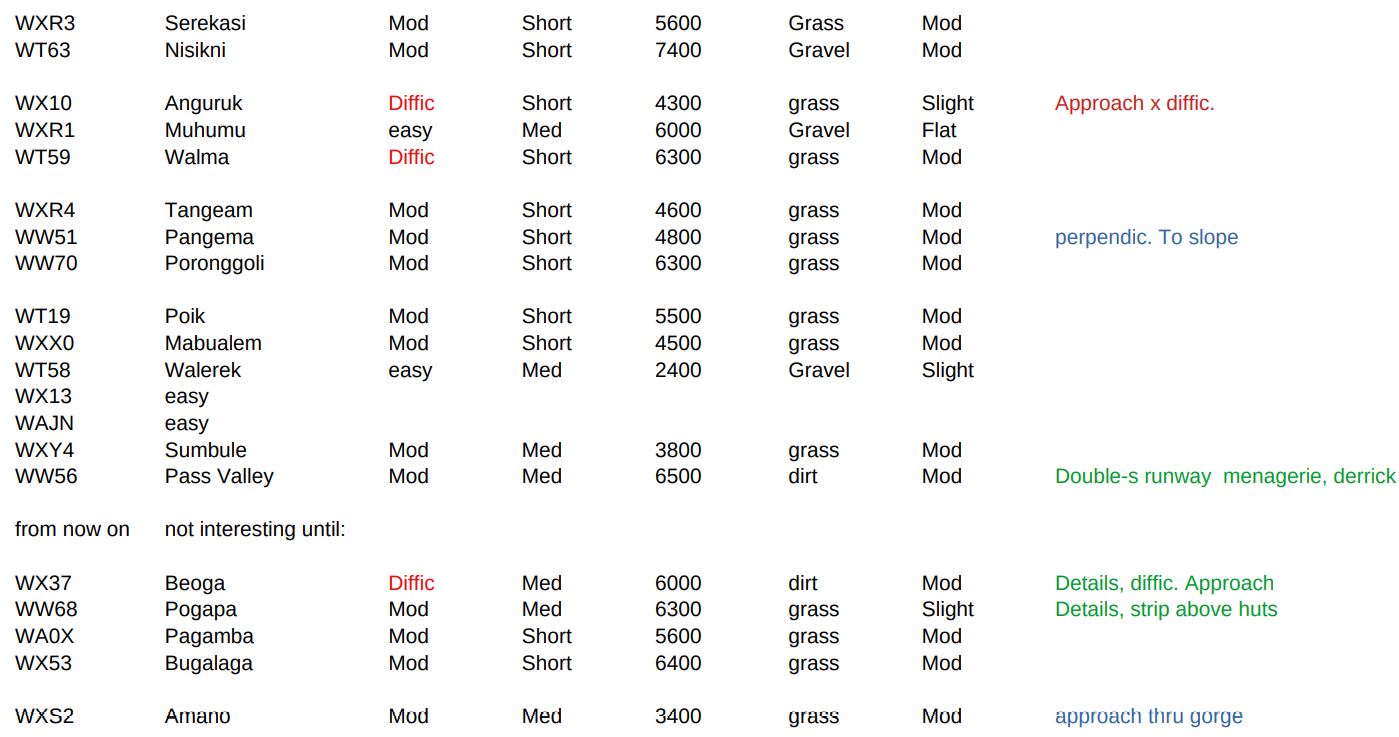 But beware: SU7 has mutated the place: some strips are still in the VFR map but vanished (“retaken by the jungle…”) completely or partially (other regions of Papua as well? something for Zen?).