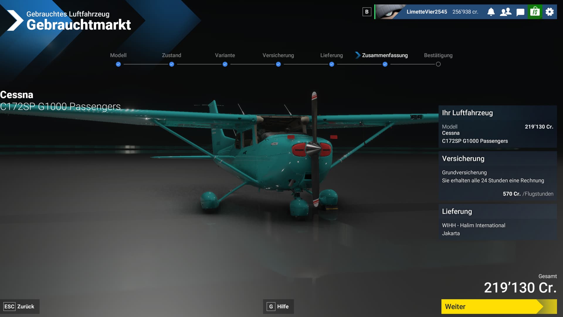 Probier mal ein anderes Flugzeug im Gebrauchten Shop? Oder Konfiguriere dir nochmals das selbe