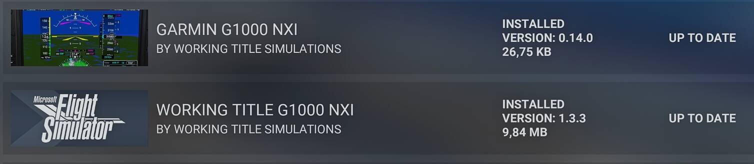 The G1000 with the colored icon/MFD is only required for 3rd Party (non-Asobo made) planes that have not upgraded their code to point to the latest in-sim Working Title G1000 (the one with the the gray Flight Simulator icon). Try removing the colored icon one unless you really need it.