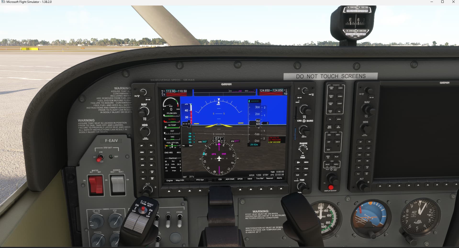 No issue with the cessna-172-skyhawk-g1000 default version in msfs-2020 :