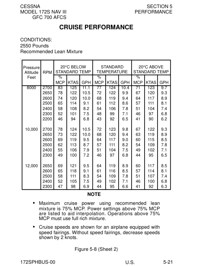 To give an idea of the difference, I am on a flight with a TAS of 114 at FL110 leaned to peak EGT with full throttle (reporting 2570 rpm). Getting 10.7 GPH.