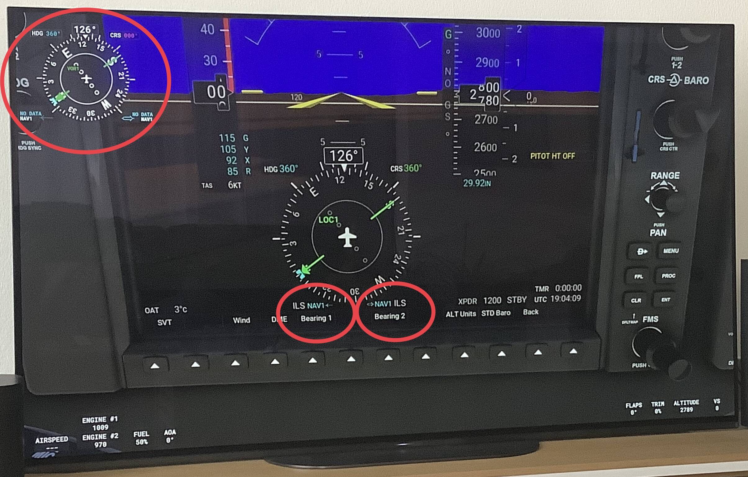 - Activate Bearing 1 and/or Bearing 2 (in PFD Garmin Touch Controller)