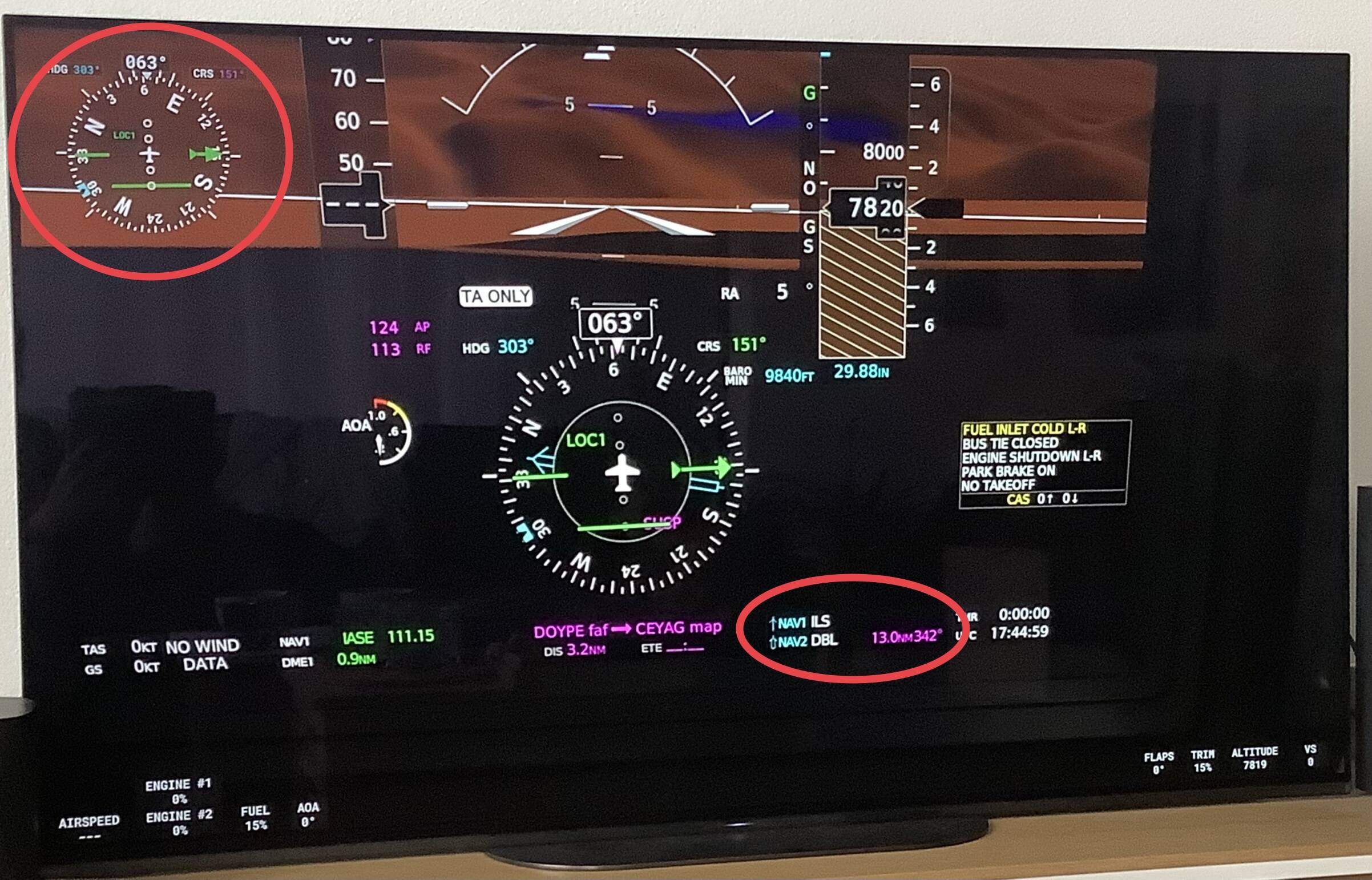 Since AAU1 i see in the C700 and TBM930 a different HSI in the Instrument Heads-Up Display (Assistance Option). If i turn on the Bearings in the Cockpit on the PFD, they are not visible in the HSI from the Instrument Heads-Up Display, wich you can turn on by the Asisstance Options. This error shows up only in the Cessna Citation Longitute (C700) and the TBM 930 since AAU1. All other Aircraft still works well with the Heads-Up Display (see Pictures below):