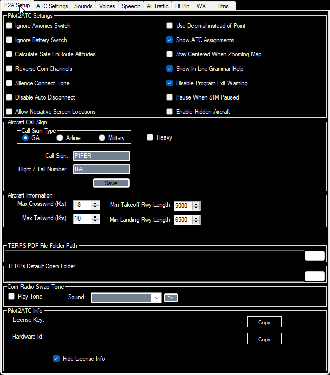 Can anyone confirm having Pilot2ATC actually give calls in reaction to FSLTL traffic? I am using Pilot2ATC with FSLTL. I know that pilot2ATC can not control traffic, but I believe I should be getting “traffic in sight” type of calls or go-arounds in reaction to traffic. I can confirm that it is seeing the player traffic and FSLTL injected traffic via the map. When I turn on visibility for those, I see them. I have :Airborne traffic alerts" on. If anyone has thoughts, here are my settings and a sample flight from Sunday through the Los Angeles airspace using VFR Flight following via Pilot2ATC. Any help is appreciated and, yes, I have asked over on avsim forums too.